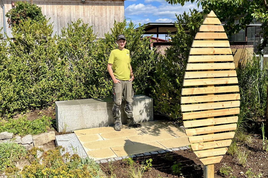 Azubis, die bei Jäger Garten- und Landschaftsbau ihre Lehre absolvieren, bauen im letzten Lehrjahr ihr eigenes Projekt und verwirklichen dabei ihre individuellen Ideen komplett selbst. Sie skizzieren, planen, erstellen ein Leistungsverzeichnis, kümmern sich um das Material und bauen dann in Eigenregie.
