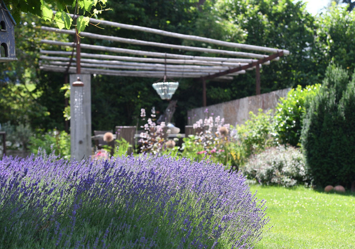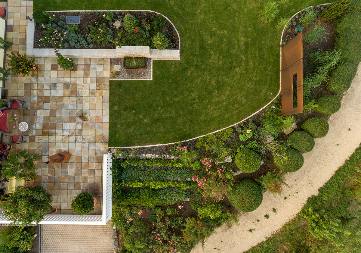 Wir schufen pflegeleichte, blühende Pflanzungen und ließen mit der großen Rollrasenfläche Kindern ausreichend Platz zum Spielen. Dabei kamen Hochbeete, Randbepflanzungen, eine Sichtschutzhecke sowie ein schönes Natursteinpflaster aus Portugal zum Einsatz. Die Besitzer sind begeistert – und wir sind es auch.